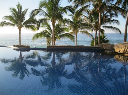 Warning: Depending where you are when you are reading this, you might feel a tinge of envy, but let me preface this post by saying that this vacation is just what I am needing to recharge and ‘smooth my feathers’... I am sitting on a beautiful sunny beach in Los Cabos, Baja Mexico sipping a Margarita and eating a pizza with Mexican hot sauce ....two weeks of bliss….with lots of time to waste away in Margaritaville. The resort I am staying at is situated on a magnificent private coral beach with 6 swimming pool, 3 restaurants, and a world famous Wine Therapy Spa with treatments called vinotherapy (more on that in another post.) I arrived late Sunday, and on Monday I did not leave the pool deck. I was totally mesmerized by the warm ocean breeze, the sound of the surf, and the reflections in the infinity pool.